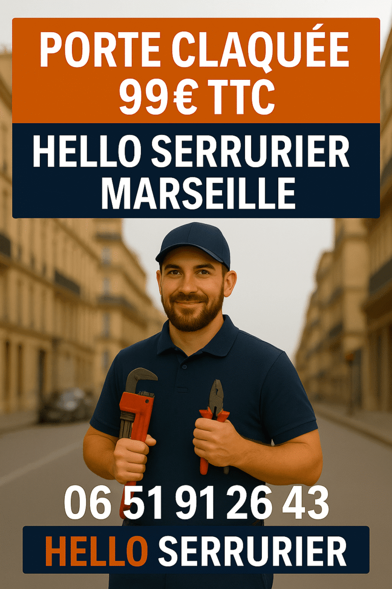 Hello Serrurier Marseille, c’est une équipe réactive et honnête pour toutes vos urgences serrurerie : ouverture de porte, changement de cylindre, serrure bloquée ou dégradation. Intervention dès 99€ TTC avec prix annoncés à l’avance et zéro mauvaise surprise.